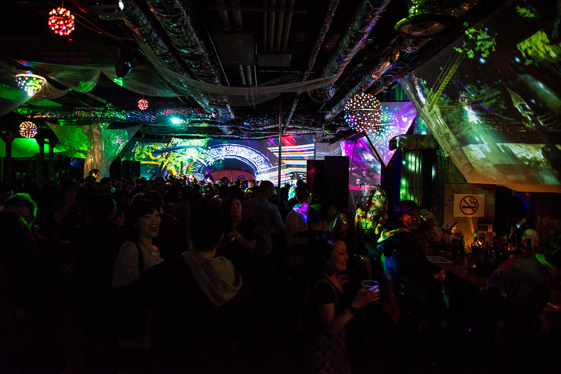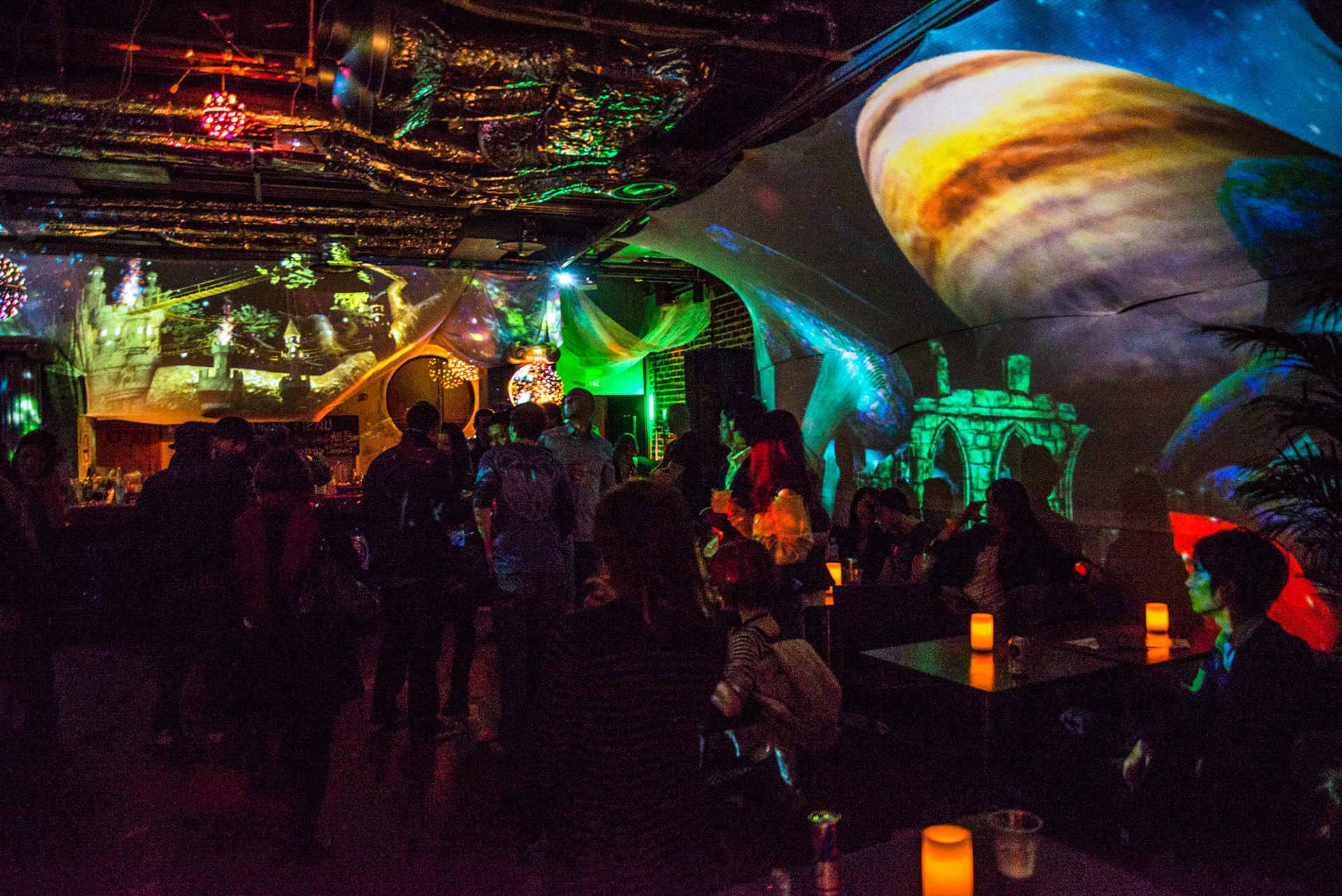 A projected environment created for the Cafe Absinthe Anniversary party in Osaka. Created by Jamie Goodenough & ColoGraphonic. Photos by Reiji F Isoi